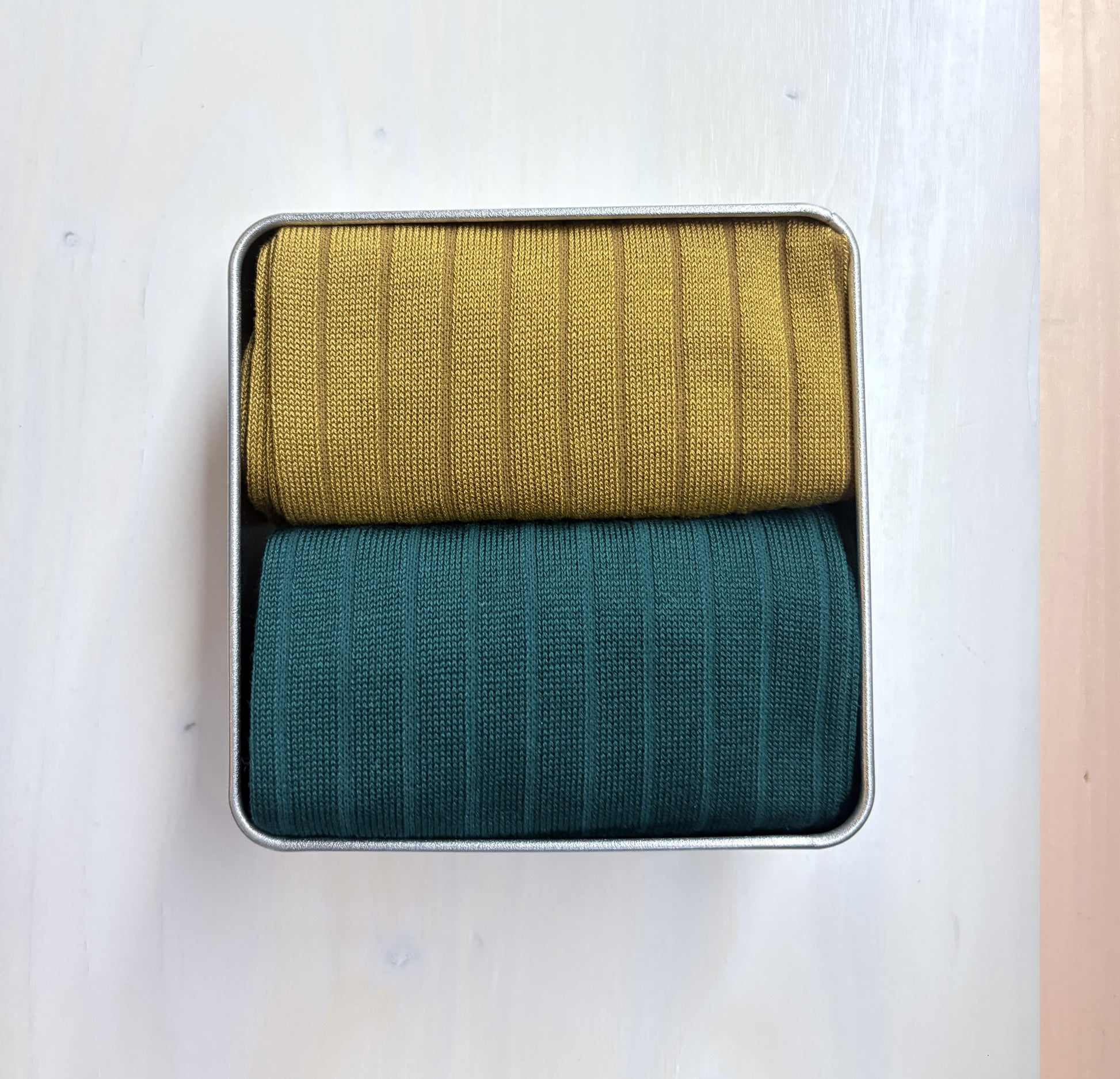 Box 2 Paia Calze Corte Cammello e Ottanio