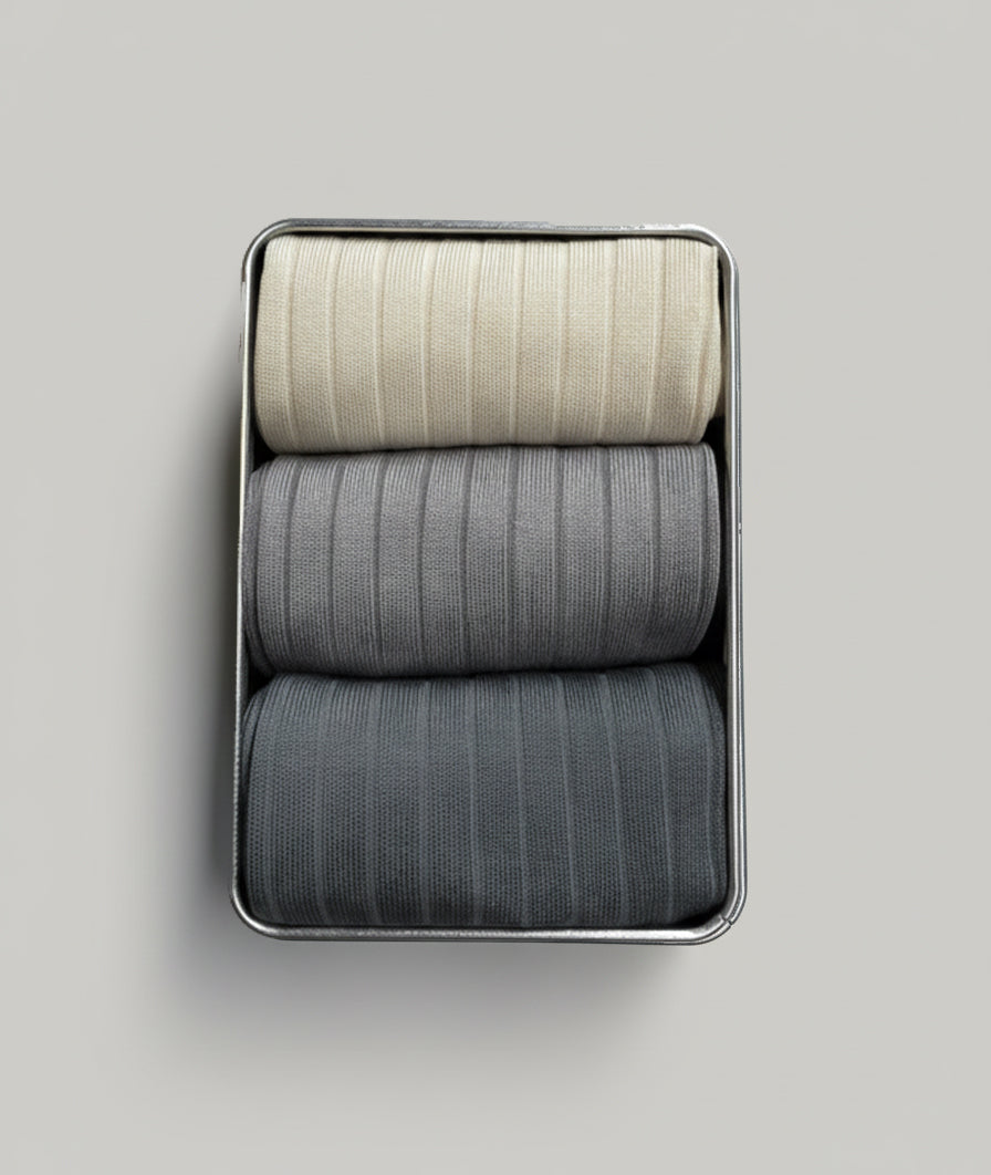 Box 3 Paia Calze Corte Grigio Medio, Grigio Chiaro e Panna.